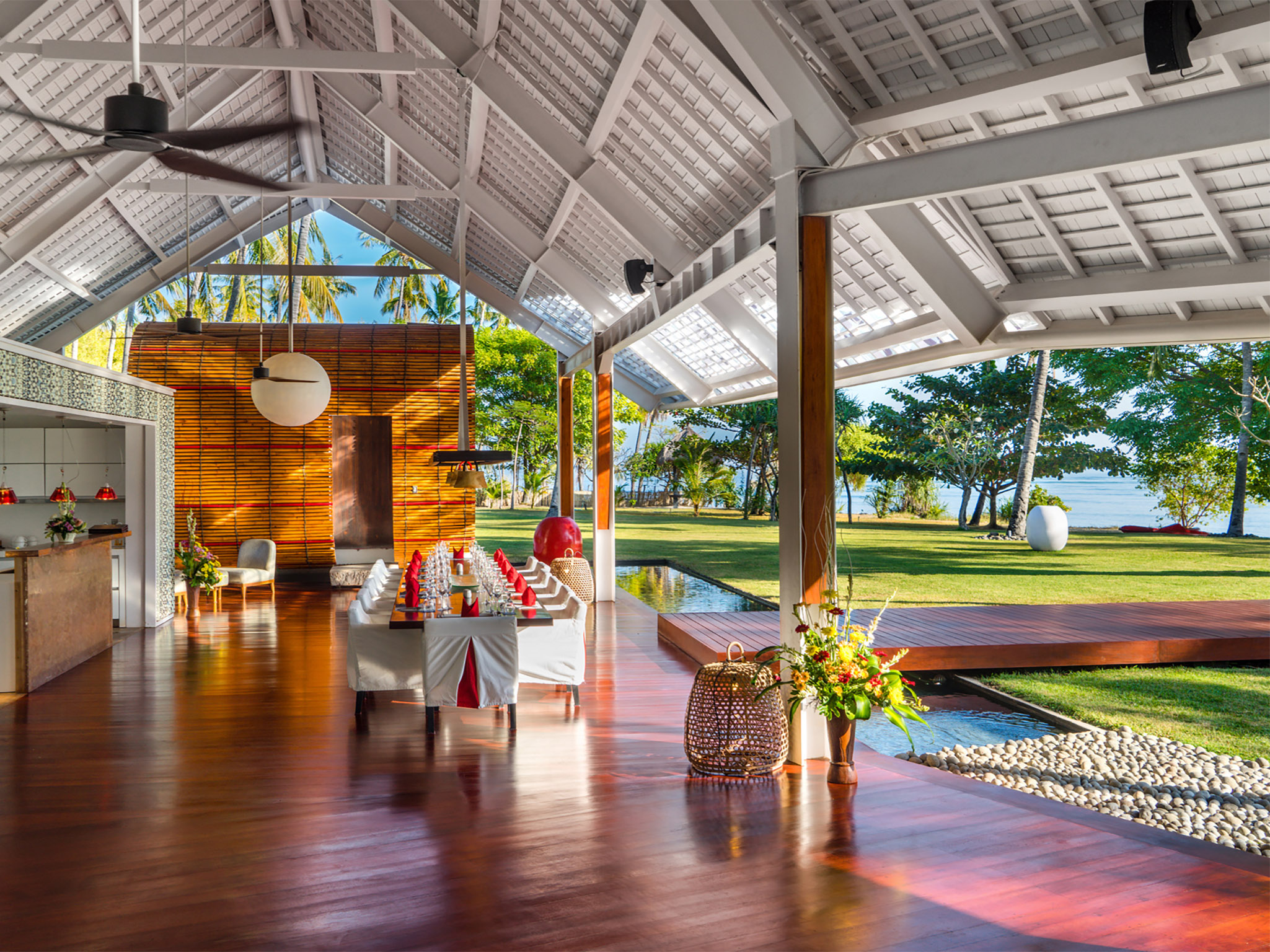 Villa Sapi rests within an expansive coconut-grove garden and comprises a main single-storey residence with a 21m swimming pool and a children’s pool, plus a stand-alone guest pavilion with two more swimming pools, set well away from the main house. Also within the villa’s grounds are a floodlit tennis court and a lumbung (traditional rice barn) massage pavilion.